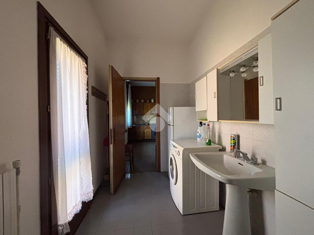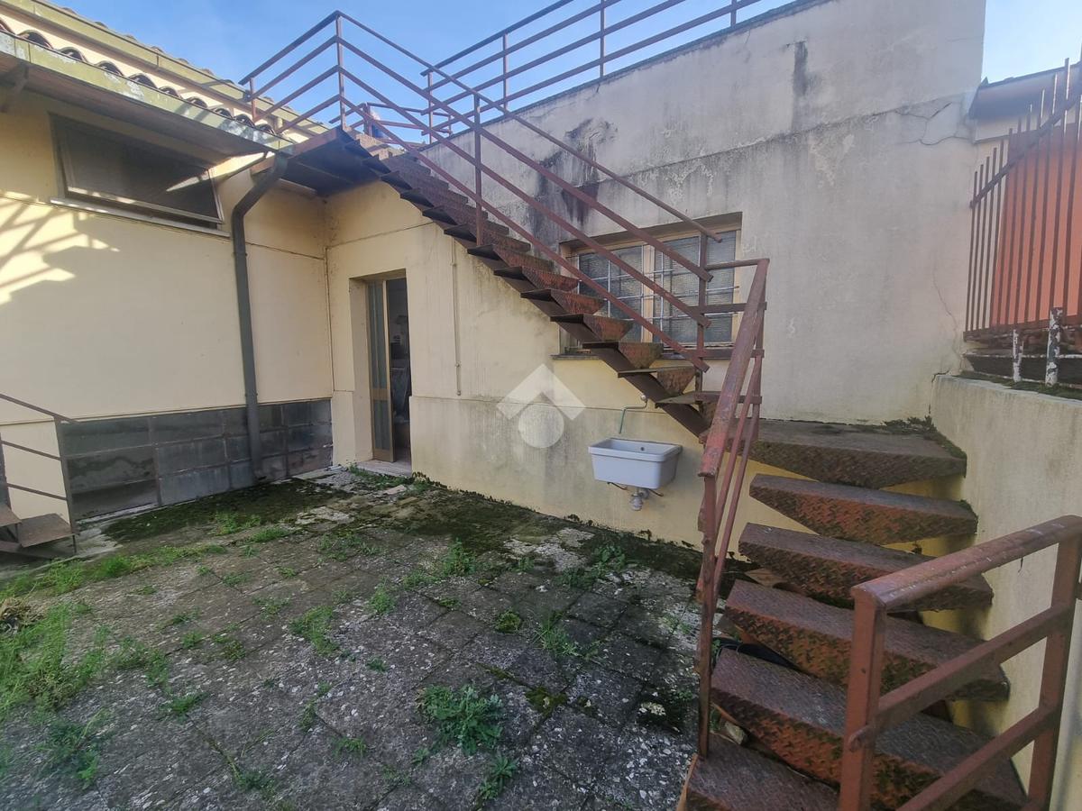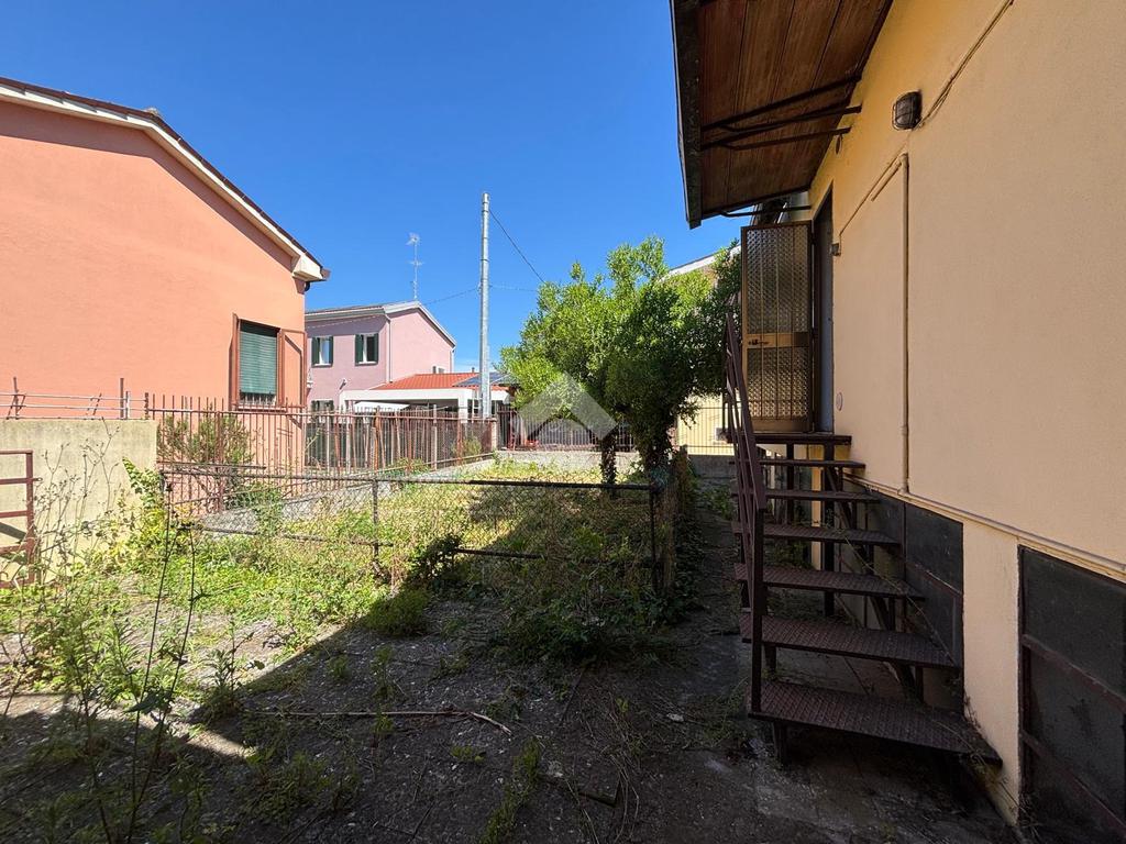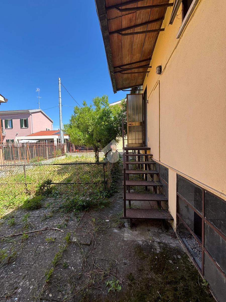 SOLESINO: casa indipendente disposta tutta su un unico piano vicina al centro del paese e ai principali servizi e comoda alla strada statale. La casa si svilupp al piano terra rialzato. Salendo alcuni gradini entrando troviamo l'ampio ingresso, sulla sinistra la camera da letto matrimoniale e sulla destra il salotto diviso dalla cucina abitabile dalla quale si accede all'antibagno e al bagno finestrato con doccia e vasca. Dall'antibagno pochi scalini ci conducono al cortile interno dal quale da una scala esterna si arriva all'ampio terrazzo solarium di circa 60 mq. La disposizione interna dell'immobile offre la possibilità di creare due camere da letto. Completano la proprietà, il seminterrato con affianco l'ampio garage di circa 60 mq e il giardino. L'immobile necessita di alcuni interventi di ristrutturazione.
