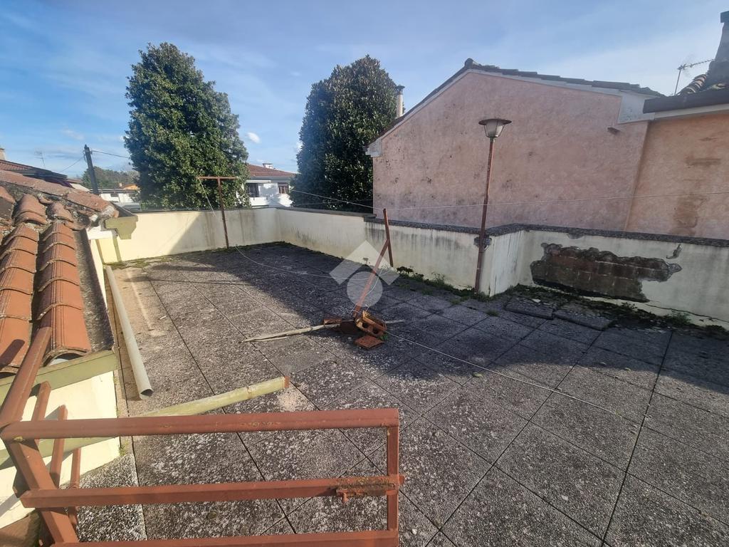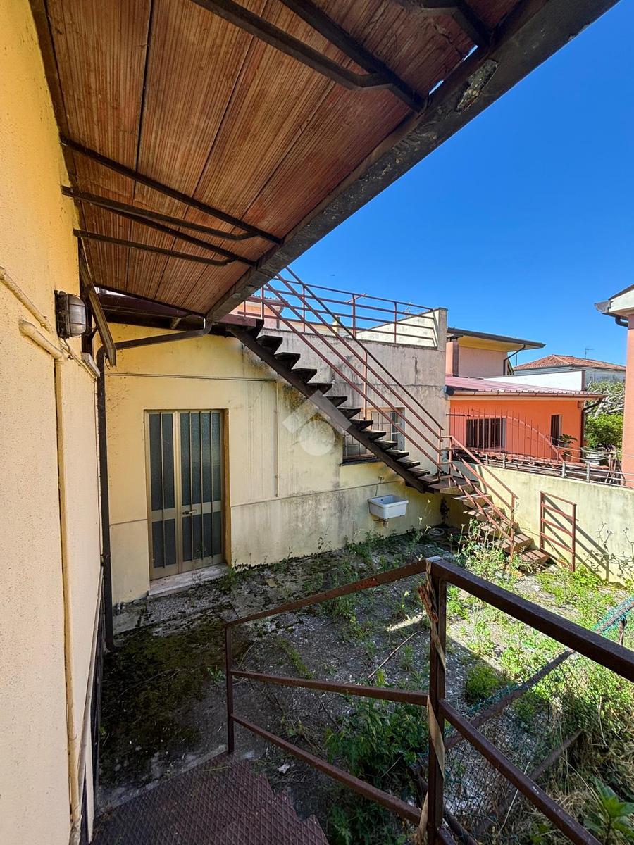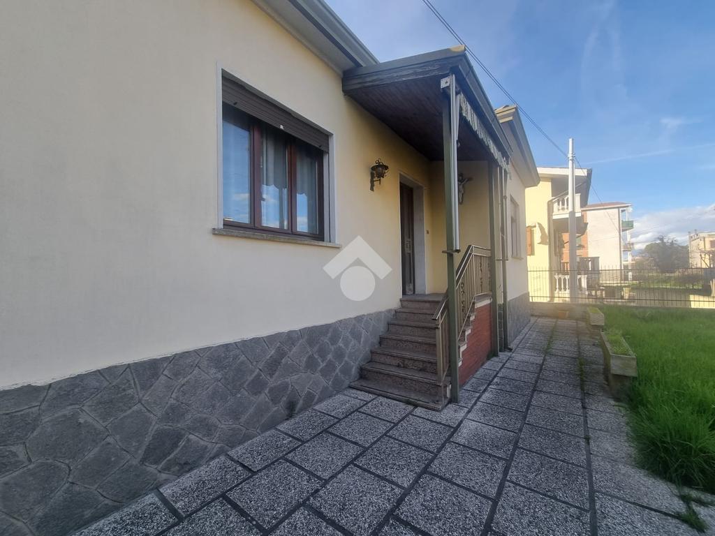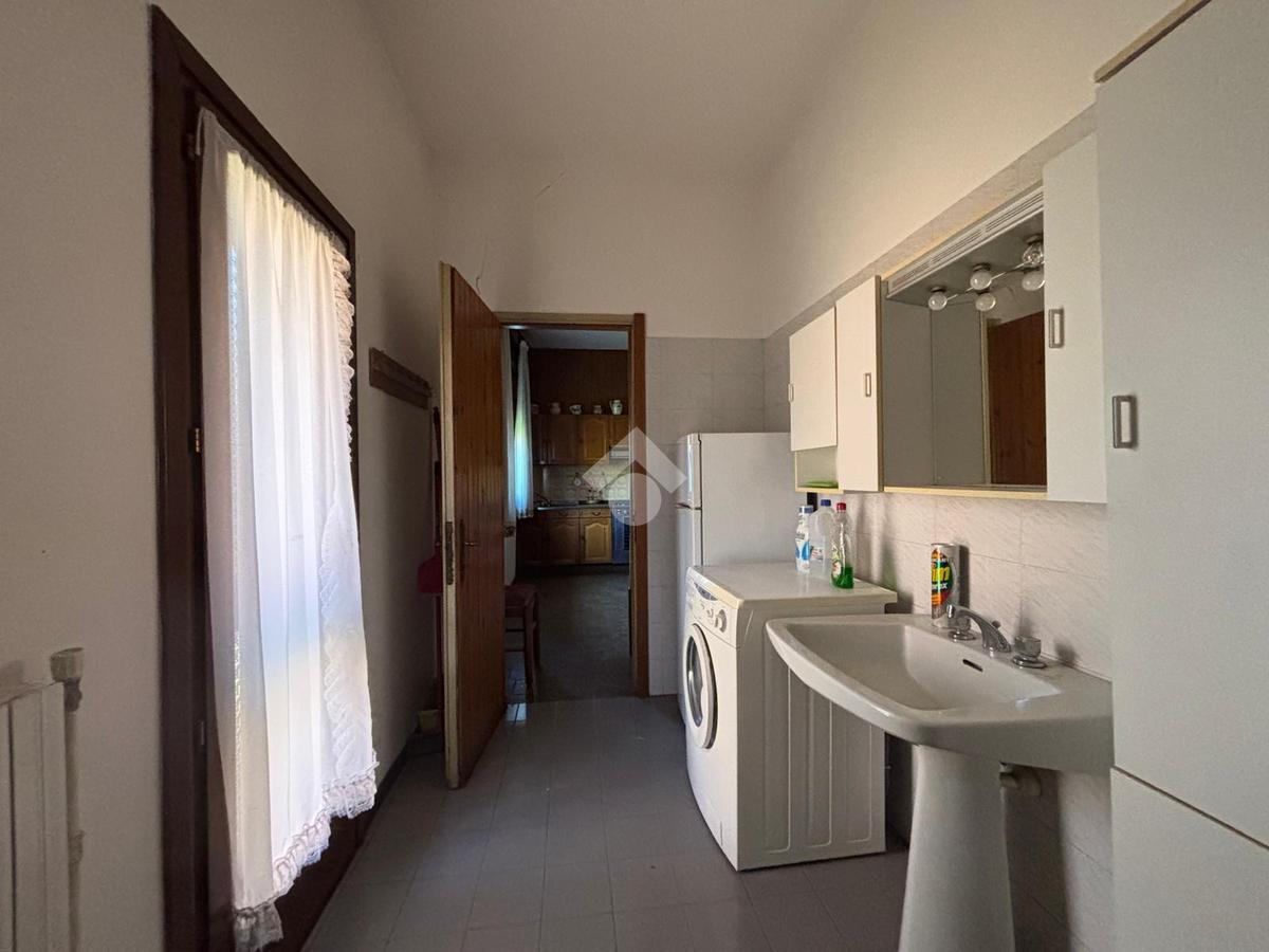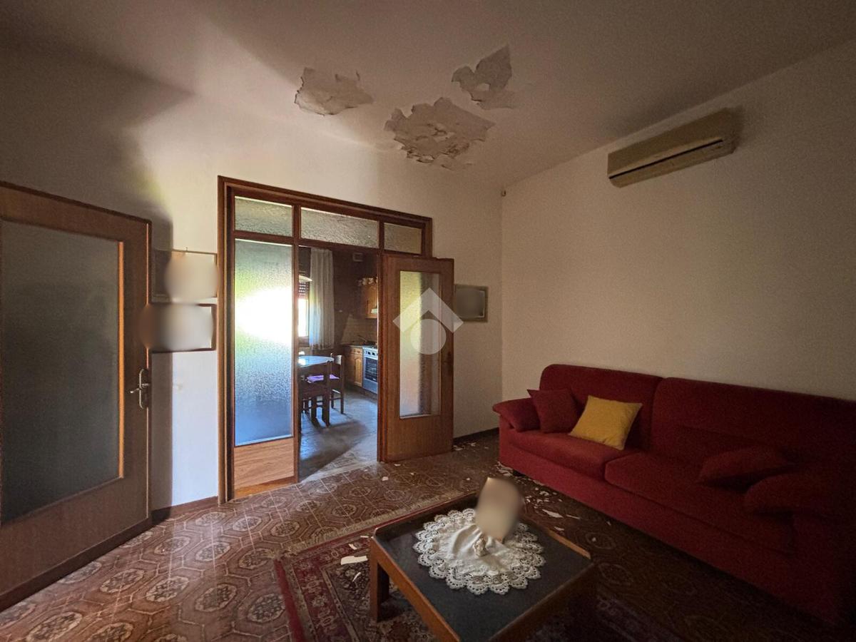 SOLESINO: casa indipendente disposta tutta su un unico piano vicina al centro del paese e ai principali servizi e comoda alla strada statale. La casa si svilupp al piano terra rialzato. Salendo alcuni gradini entrando troviamo l'ampio ingresso, sulla sinistra la camera da letto matrimoniale e sulla destra il salotto diviso dalla cucina abitabile dalla quale si accede all'antibagno e al bagno finestrato con doccia e vasca. Dall'antibagno pochi scalini ci conducono al cortile interno dal quale da una scala esterna si arriva all'ampio terrazzo solarium di circa 60 mq. La disposizione interna dell'immobile offre la possibilità di creare due camere da letto. Completano la proprietà, il seminterrato con affianco l'ampio garage di circa 60 mq e il giardino. L'immobile necessita di alcuni interventi di ristrutturazione.