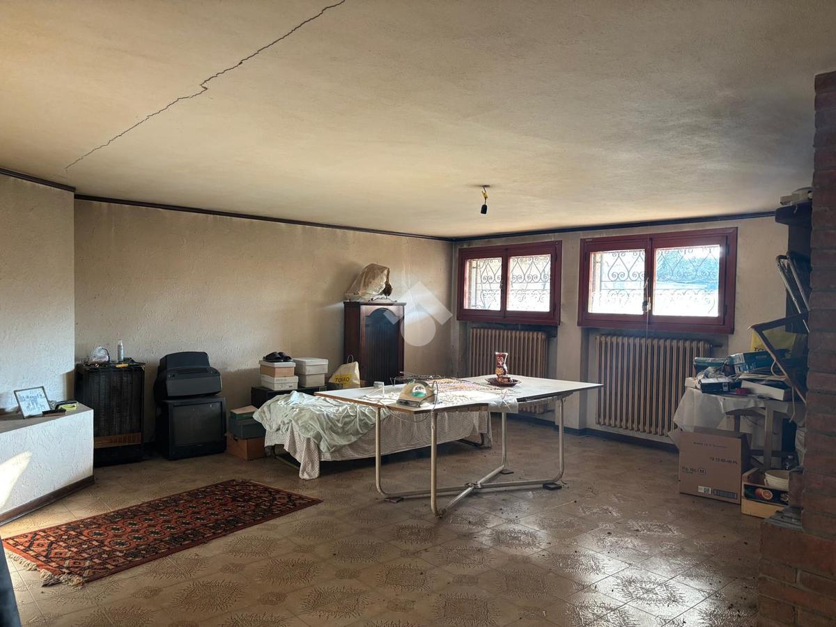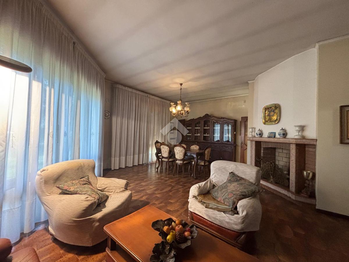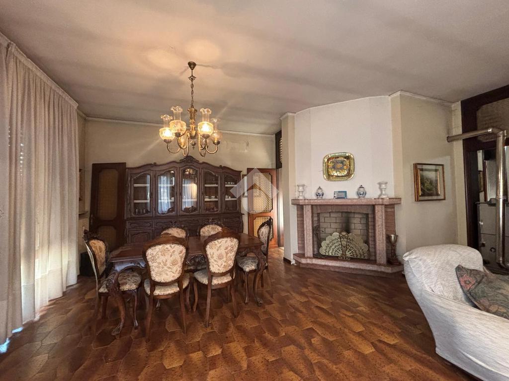 SOLESINO: Villa singola tipica degli anni Ottanta, la soluzione ideale per chi cerca ampi volumi e una configurazione abitativa estremamente funzionale, lungo la strada Provinciale che collega Solesino a Sant'Elena. La proprietà si distingue per i suoi spazi generosi, ideale sia per una famiglia numerosa, sia per chi necessita di aree dedicate al lavoro. Al piano superiore si sviluppa l'intera zona residenziale. Entrando, si viene accolti da un salone grande e luminoso, valorizzato dalla presenza di un caminetto. Adiacente, troviamo la cucina, anch'essa di grandi dimensioni, completata dalla comoda e funzionale dispensa, elementi essenziali per chi vive la cucina quotidianamente. Un dettaglio notevole è l'accesso diretto al porticato esterno, raggiungibile sia dal salone che dalla cucina, estendendo di fatto la zona giorno all'aperto. La zona notte è composta da tre camere matrimoniali ben sfruttabili e da doppi servizi: un bagno padronale molto ampio con vasca e un secondo bagno di servizio, netrambi finestrati. Dalla zona notte una scala porta alla mansarda, uno spazio versatile da adibire secondo le proprie esigenze. Il vero valore aggiunto di questa villa è dato dal piano inferiore, un ambiente completamente attrezzato e versatile. Qui è stata ricavata una spaziosa taverna con camino, affiancata da una lavanderia e da un utile studio. Completano il livello due grandi cantine, perfette per ogni esigenza di stoccaggio. Questa distribuzione rende la villa particolarmente adatta a due scopi distinti: può ospitare comodamente una famiglia numerosa che necessita di aree ricreative extra, oppure può servire un acquirente che desidera utilizzare il piano inferiore per la propria attività lavorativa, garantendo la separazione tra vita privata e professionale. All'esterno, la casa è circondata dal giardino piantumato mentre sul retro della proprietà sono disponibili quattro garage separati. L'immobile necessita di alcuni interventi di ristrutturazione