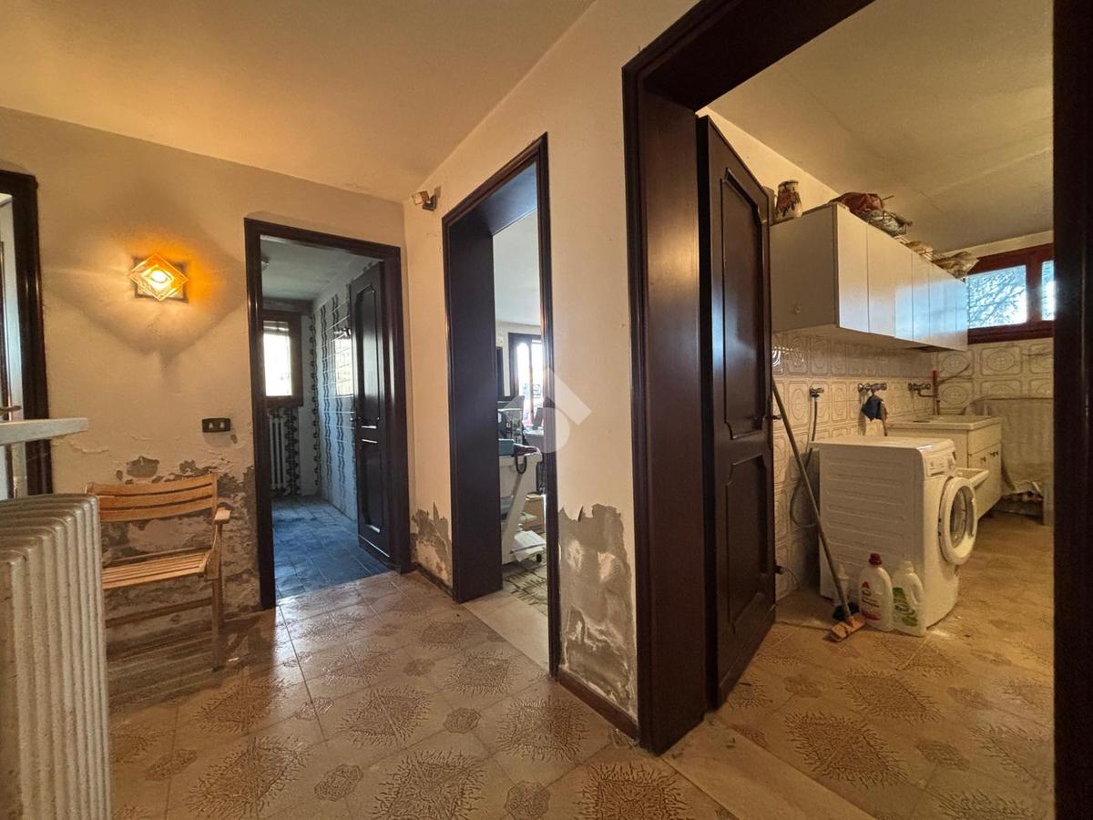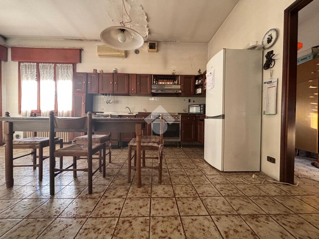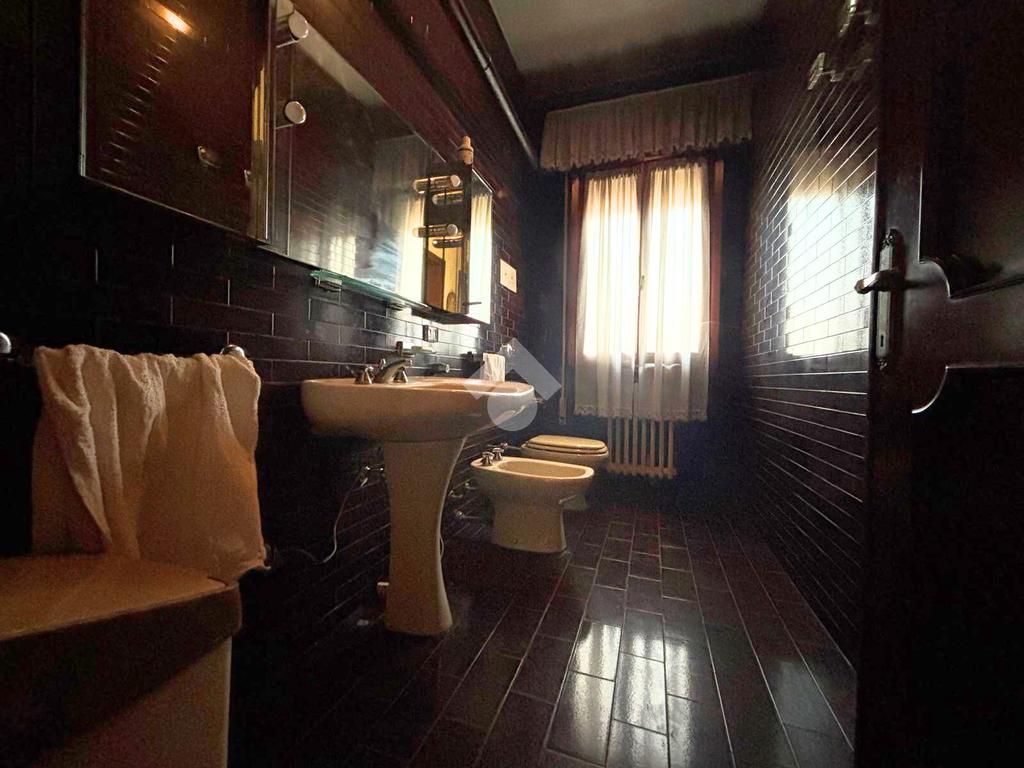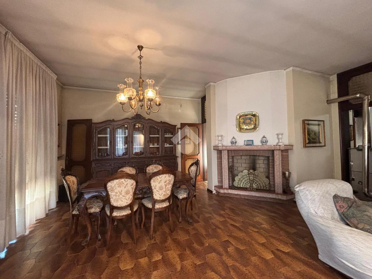 SOLESINO: Villa singola tipica degli anni Ottanta, la soluzione ideale per chi cerca ampi volumi e una configurazione abitativa estremamente funzionale, lungo la strada Provinciale che collega Solesino a Sant'Elena. La proprietà si distingue per i suoi spazi generosi, ideale sia per una famiglia numerosa, sia per chi necessita di aree dedicate al lavoro. Al piano superiore si sviluppa l'intera zona residenziale. Entrando, si viene accolti da un salone grande e luminoso, valorizzato dalla presenza di un caminetto. Adiacente, troviamo la cucina, anch'essa di grandi dimensioni, completata dalla comoda e funzionale dispensa, elementi essenziali per chi vive la cucina quotidianamente. Un dettaglio notevole è l'accesso diretto al porticato esterno, raggiungibile sia dal salone che dalla cucina, estendendo di fatto la zona giorno all'aperto. La zona notte è composta da tre camere matrimoniali ben sfruttabili e da doppi servizi: un bagno padronale molto ampio con vasca e un secondo bagno di servizio, netrambi finestrati. Dalla zona notte una scala porta alla mansarda, uno spazio versatile da adibire secondo le proprie esigenze. Il vero valore aggiunto di questa villa è dato dal piano inferiore, un ambiente completamente attrezzato e versatile. Qui è stata ricavata una spaziosa taverna con camino, affiancata da una lavanderia e da un utile studio. Completano il livello due grandi cantine, perfette per ogni esigenza di stoccaggio. Questa distribuzione rende la villa particolarmente adatta a due scopi distinti: può ospitare comodamente una famiglia numerosa che necessita di aree ricreative extra, oppure può servire un acquirente che desidera utilizzare il piano inferiore per la propria attività lavorativa, garantendo la separazione tra vita privata e professionale. All'esterno, la casa è circondata dal giardino piantumato mentre sul retro della proprietà sono disponibili quattro garage separati. L'immobile necessita di alcuni interventi di ristrutturazione