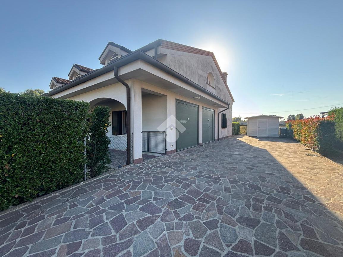 VESCOVANA: in località Santa Maria D'Adige, proponiamo in vendita villa singola di circa 228 mq, caraterrizata da ambienti ampi, luminosi e ottimamente distribuiti su un unico livello. Dal portico si accede all'ingresso dell'abitazione e si viene subito accolti nell'ampio soggiorno con camino funzionante. Alla sinistra del soggiorno si sviluppa la cucina abitabile, spaziosa e funzionale, arricchita da una porta finestra che conduce al portico esterno ideale per pranzare o cenare in compagnia. Dal soggiorno qualche gradino conduce alla zona notte dove troviamo un ampia e luminosa camera da letto matrimoniale con bagno privato finestrato dotato di doccia e due camere da letto doppie. Adiacente ad una delle stanze c'è il secondo bagno finestrato completo di doccia. La zona giorno è divisa dalla zona notte da una pratica porta a scomparsa. Dal corridoio si accede direttamente al garage doppio di circa 40mq, alla pratica lavanderia e tramite la scala interna, all'ampia mansarda, un ambiente versatile da personalizzare in base alle proprie esigenze di circa 160m. La proprietà è completata da impianto di climatizzazione e sistema di allarme, elementi che uniscono comfort moderno e sicurezza. Questa soluzione è ideale per chi cerca indipendenza, spazi genorosi e un contesto sereno nella tranquillità